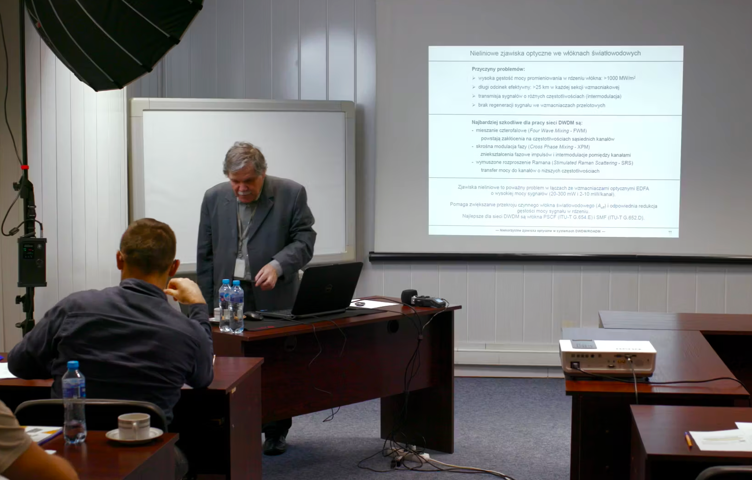 Kurs zawiera nagranie jednego z wykładów ("Nieliniowe zjawiska optyczne we włóknach światłowodowych") pochodzące z kursu "Niekorzystne zjawiska optyczne w systemach DWDM/ROADM".